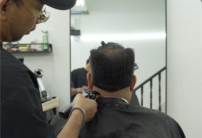 Upgrade your routine to “me-time.” Sink into a comfy chair, sip a complimentary drink, and let the day’s stress melt away. From a Soothing scalp massage wash to our Signature hot towel finish with a refined scent, we turn a haircut into a relaxing, pampering experience that leaves you recharged.